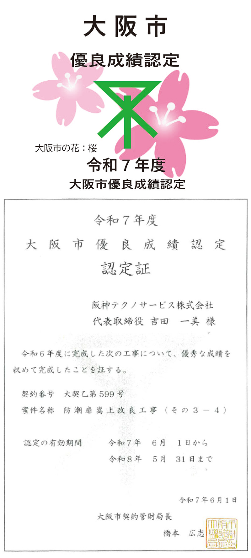 | 営業登録 | 建設業許可 大阪府知事 許可(特-2)第118030号 (機械器具設置工事業、鋼構造物工事業) |